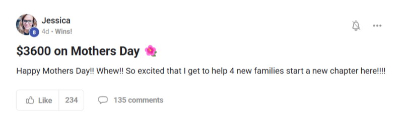 Meet Jessica. Her enthusiastic post – “$3600 on Mothers Day ???? Happy Mothers Day!! Whew!! So excited that I get to help 4 new families start a new chapter here!!!!” – is a vibrant snapshot of the joy and fulfillment that can come from building a successful online venture through the Legacy Builders framework. The fact that this significant $3600 income was generated on Mother’s Day adds an extra layer of warmth and personal significance to her achievement.